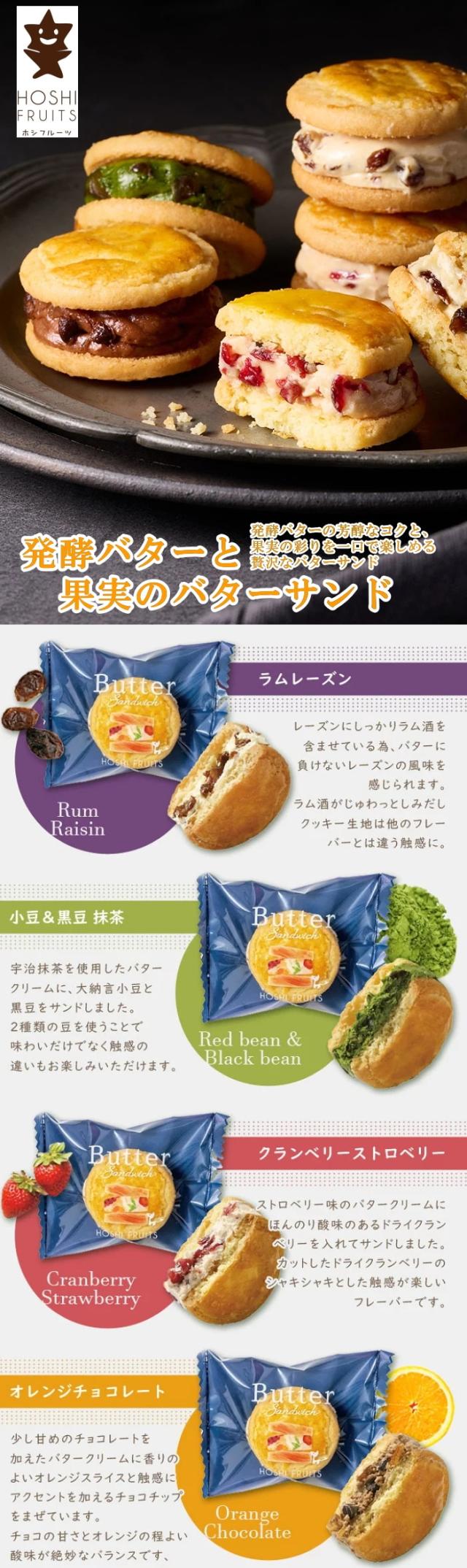 母の日☆ホシフルーツ 発酵バターと果実のバターサンド 6個 お菓子、ブランド、送料無料、おいしい、個包装、ドライフルーツ、発酵バター、濃厚、サクサク、こだわり、ラムレーズン、クランベリー、ストロベリー、小豆、抹茶、オレンジチョコレート
