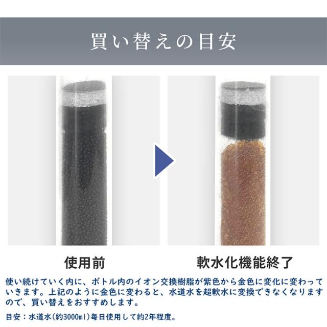 | 約3000mL(脱塩素、軟水化寿命)スプレー約2万回分 |