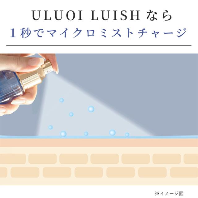 【ULUOI Luish(うるおいルイッシュ)】は、水道水から残留塩素98%を除去して弱酸性軟水のミストに変化させるポータブルミストスプレーです。1立方センチメートルあたり約4億個のマイクロナノバブルが発生し、毛穴の奥までしっかりとアプローチしてお肌をすっきりと潤してくれます。