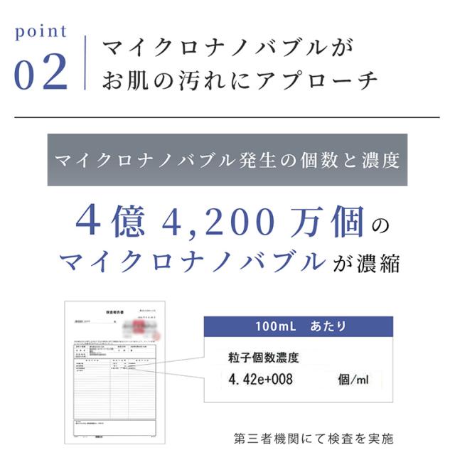 約4億個※のマイクロナノバブル発生させることで、お肌へスッと馴染み表面の汚れにもアプローチします。