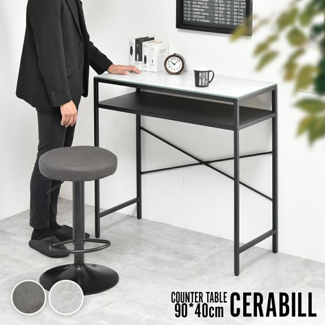 カウンターテーブル 高さ90cm 幅90cm cetb0274 天板セラミック 耐熱 棚板 収納 カウンター ダイニング テーブル 北欧 おしゃれ