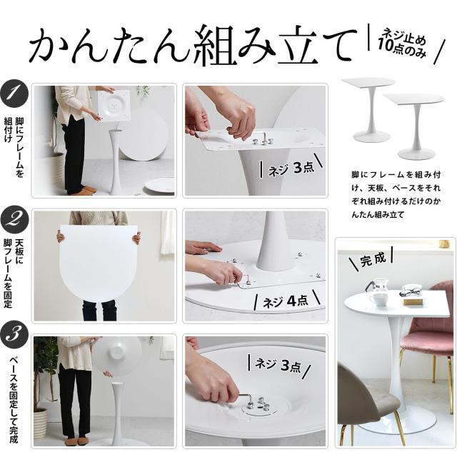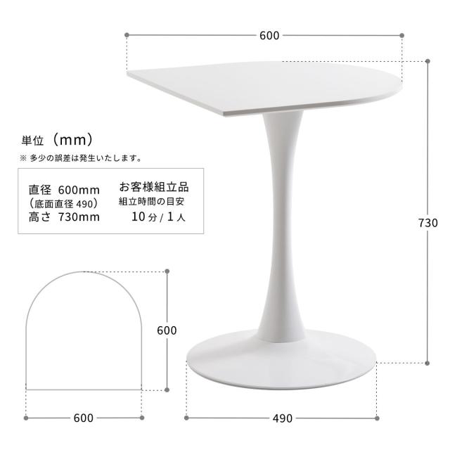ハーフラウンドテーブル 60cm【ホワイト】 W600×D600×H730mm チューリップコーヒーテーブル Tulip Coffee Table カフェテーブル チューリップテーブル ラウンドテーブル ダイニングテーブル