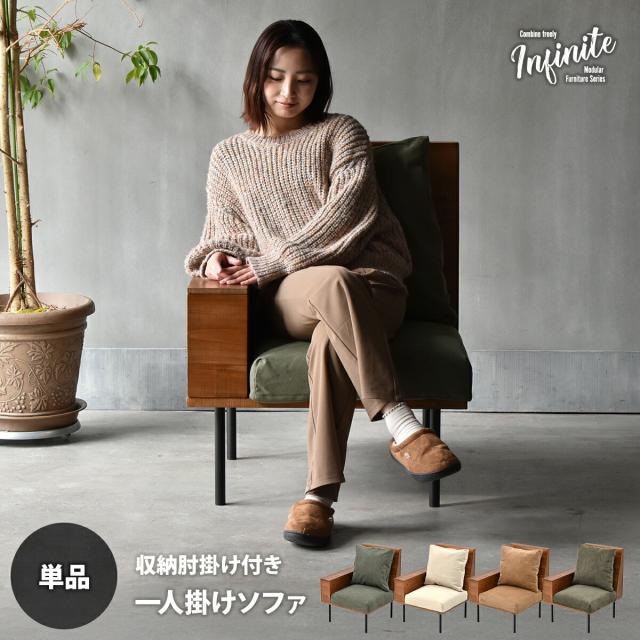 ソファー 片肘ソファ 収納 組合せソファ 肘掛け付き 1Pソファ ひとり掛けソファ infinite リビング ダイニング ヴィンテージ 古材風 天然木 天然木 ラバーウッド 洗えるカバー コーデュロイ キャンバス生地 キャンバス地 エクリュ 単独ソファ IFSE0317