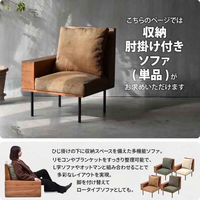 ソファー 片肘ソファ 収納 組合せソファ 肘掛け付き 1Pソファ ひとり掛けソファ ヴィンテージ 古材風 天然木 天然木 洗えるカバー コーデュロイ キャンバス生地
