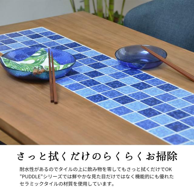 PUDDLE パドル ダイニングテーブル 幅120 PUDT-120 ダイニング リビング テーブル 家具 食卓 西海岸風 カリフォルニアスタイル レトロ セラミックタイル タイル クロスバー マリン 爽やか ヴィンテージ ウッド リゾート 天然木 ラッカー塗装 木目調 グラデーション 120幅
