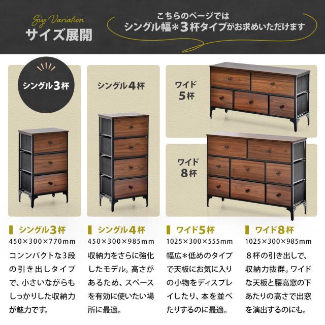 チェスト ターンチェスト 幅45 引き出し 3段 3杯 RVLS0283 リバーシブル ファブリックチェスト 不織布 収納 タンス リビング 棚 ラック 大容量 ボックス アメリカン ヴィンテージ オシャレ インテリア