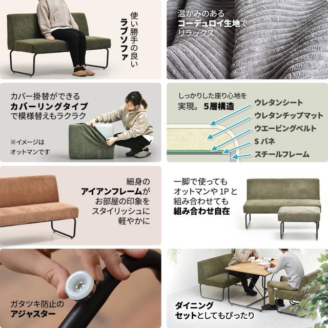 NOVEMBER 2Pソファー NVS-2P ヴィンテージ カジュアル 角型 スチール W 1125 × D 590 × H 705(SH420)(mm) ダイニングソファー ラブソファ 二人掛けソファー 2人掛けソファ カバー掛替 替えカバー ブラウン グリーン グレー ブルー コーデュロイ