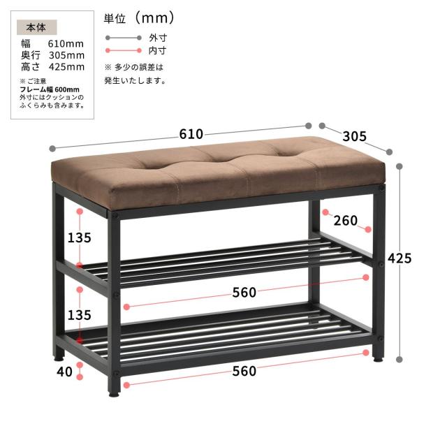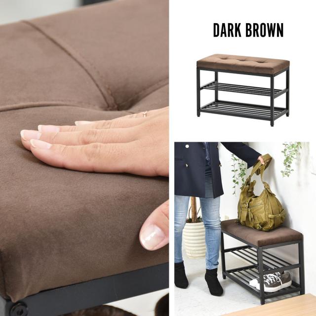 ベロアベンチシューズラック W60 ONBN0082VEDBR ONBN0082VELBN W610×D305×H425mm 下駄箱 玄関収納 玄関家具 靴ラック ラック 靴箱 収納 おしゃれ コンパクト シンプル 靴入れ ダークブラウン ライトブラウン オープンラック シェルフ スリッパラック