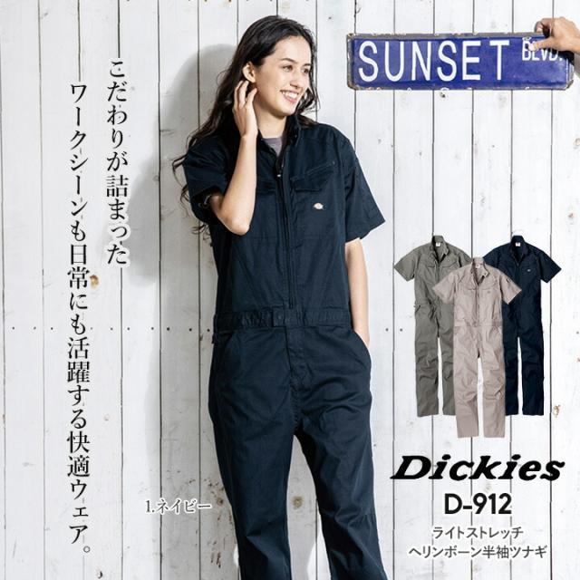 ディッキーズ 半袖ツナギ ストレッチ ヘリンボーン D-912 軽量 春夏 作業服 作業着 Dickies 超ストレッチ おしゃれ メンズ レディース アウトドア カジュアル 農作業 農業 酪農 整備 工場 ガーデニング