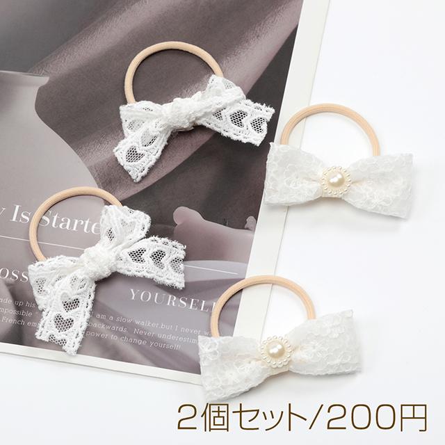 レースリボンヘアゴム ツインテールヘアゴム キッズヘアゴム ナチュラルヘアゴム りぼんヘアゴム ホワイトカラー 2個セット