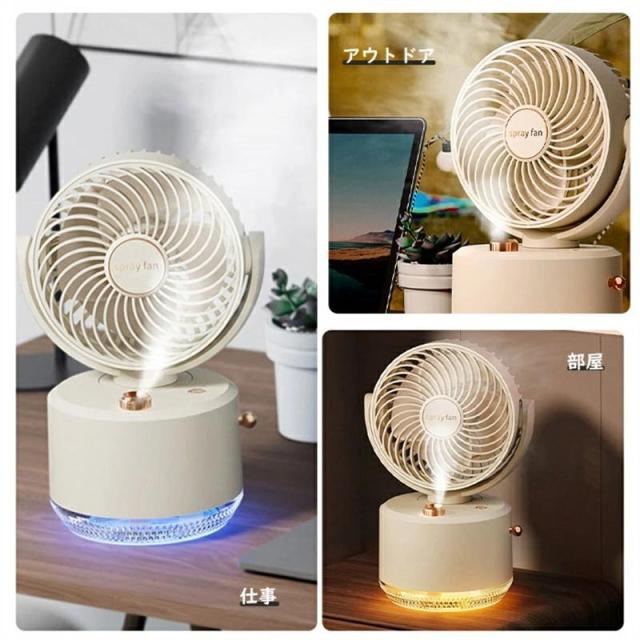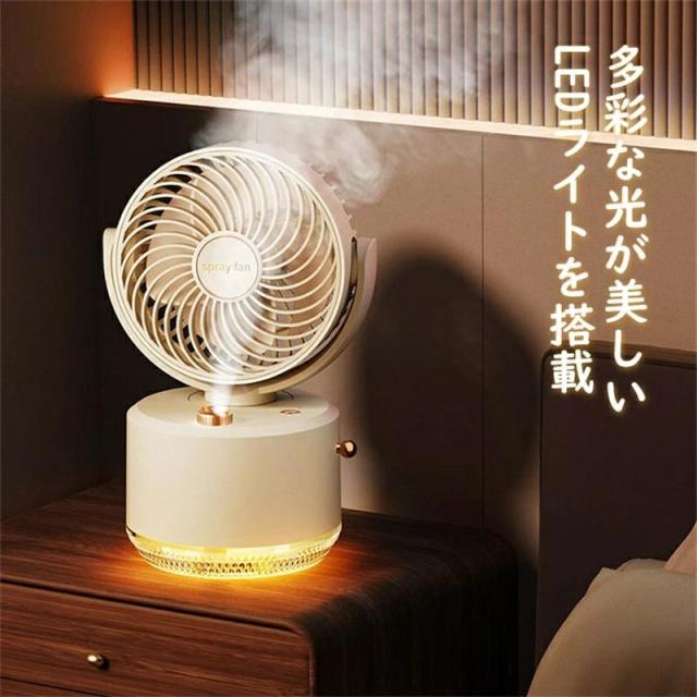 ミスト扇風機 卓上扇風機 小型加湿器 角度調整 静音 充電式 お手入れ簡単 おしゃれ LEDライト付き 送風機 節電 省エネ コンパクト 大容量バッテリー 軽量 便利