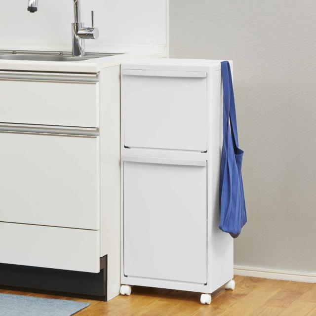 ゴミ箱 40L ホワイトラッシュ 多段 分別 ( ごみ箱 40リットル 2段 縦型 フラップ ふた付き スリム 省スペース キッチン キャスター付き ゴミ箱 分別 キッチン ゴミ箱)