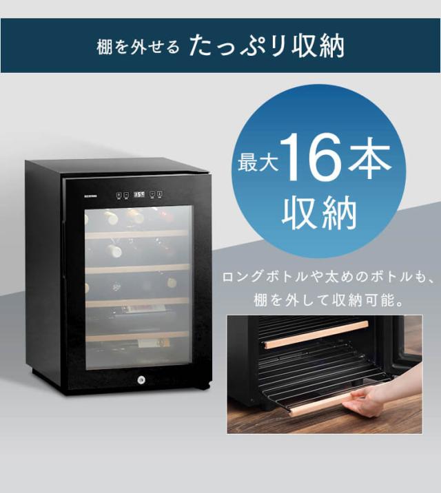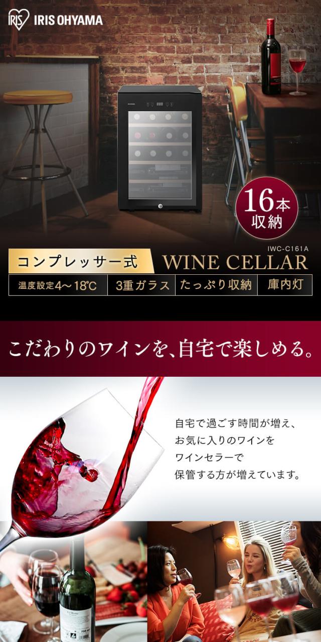 ワインセラー16本 IWC-C161A-B ブラック ワインセラー ブラック ワインクーラー 家庭用 庫内灯付き コンプレッサー式 冷却力 ワイン 自宅 winecellar 酒 アイリスオーヤマ 送料無料