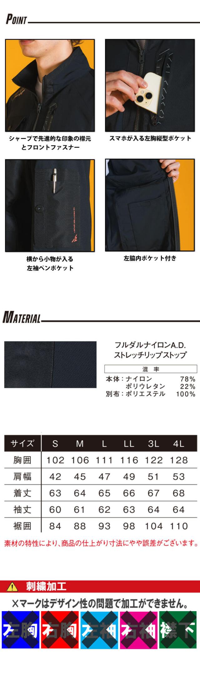 ・素材 : フルダルナイロンA.D.ストレッチリップストップ
