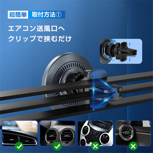 車載 ワイヤレス 充電器 スマホホルダー クリップ式 360度回転 片手操作 ワイヤレス充電 磁気 QI 急速充電 強力 マグネット 磁石 取付簡単 車載充電器 携帯ホルダー iPhone & Android多機種 多車種が対応 超薄 車載ワイヤレス充電器 車載スマホホルダー 片手操作 安定性が強い