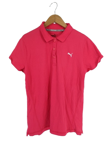 【中古】プーマ PUMA ポロシャツ 半袖 鹿の子 刺繍 ロゴ サイズXL ピンク 国内正規 QQQ レディース