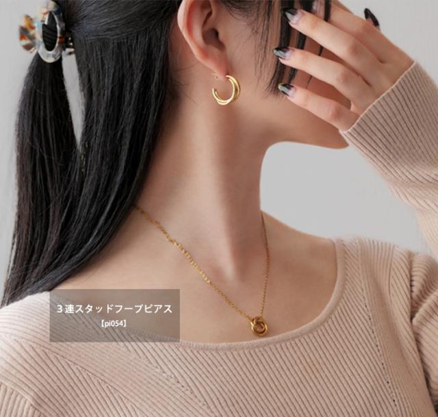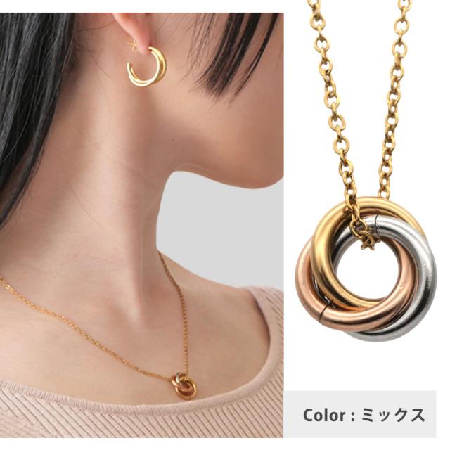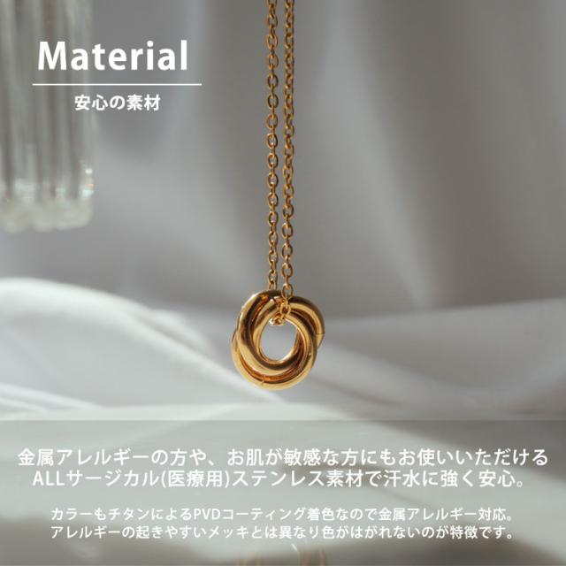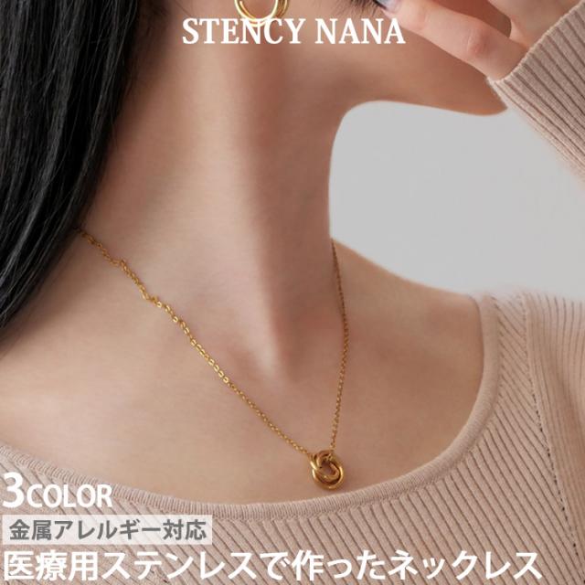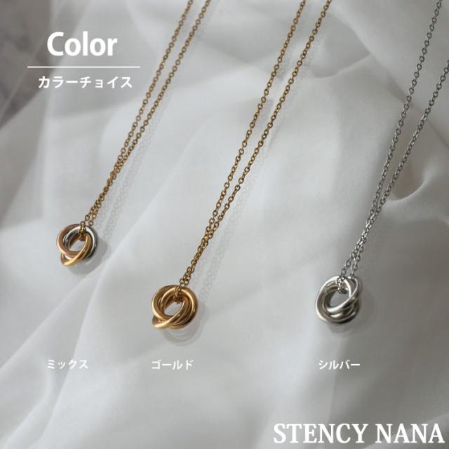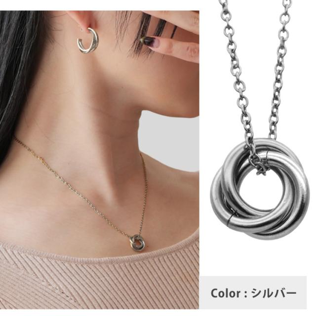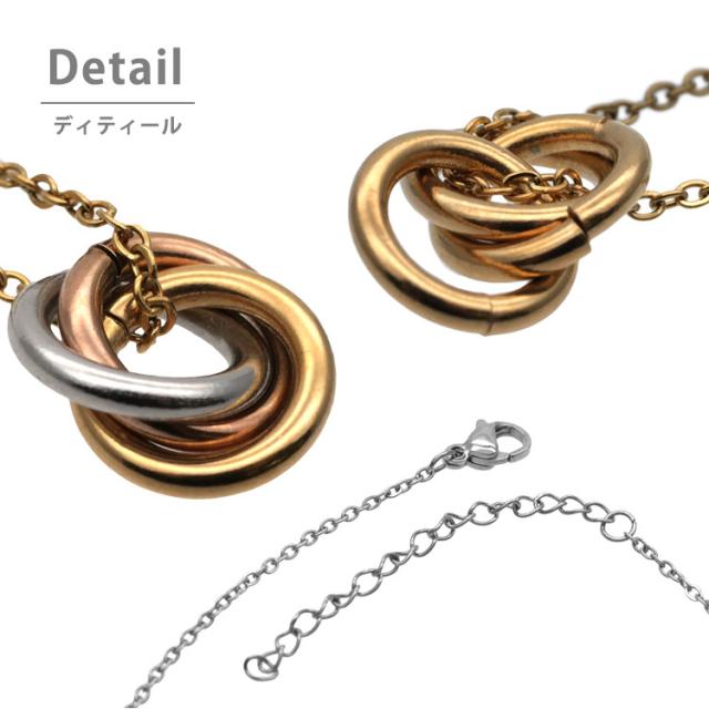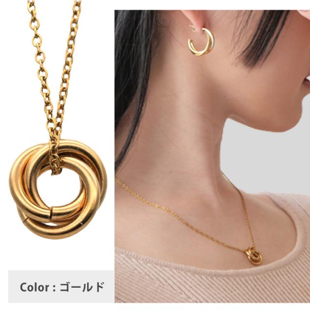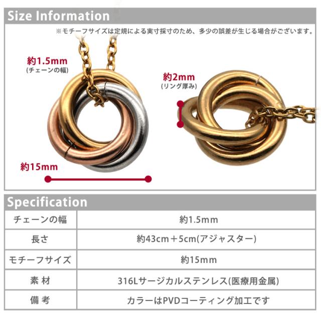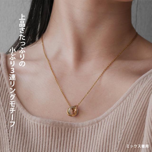 金属アレルギー対応 ステンレスペンダント 3連デザインリングペンダント ステンレスネックレス 安心 316L ニッケルフリー ネックレスチェーン 小豆チェーン レディース スポーツ プール 汗をかいてもかぶれない カニカン