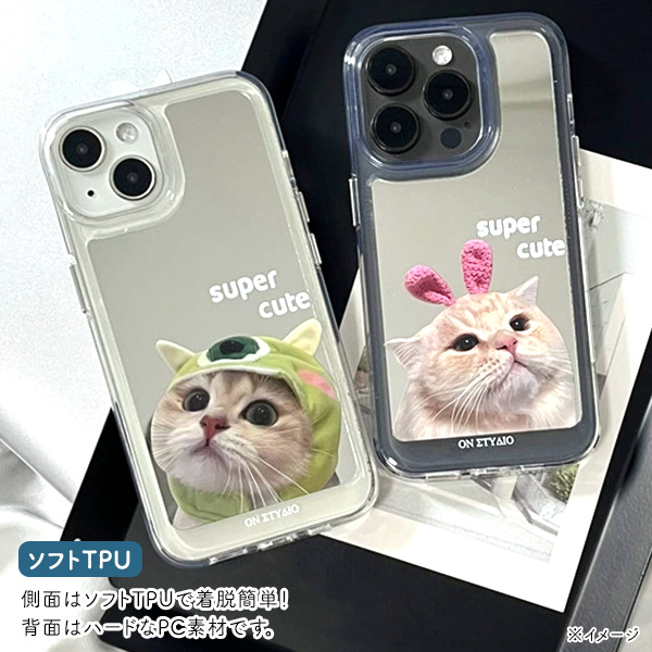 スマホケース iPhone16Pro用 わんにゃん ミラーケース 犬 猫 イラスト かわいい 動物 ケース 装着簡単 背面保護 iPhoneケース にゃんこグッズ わんこグッズ スマホカバー 携帯ケース お洒落 スマートフォンケース SoftBank au docomo