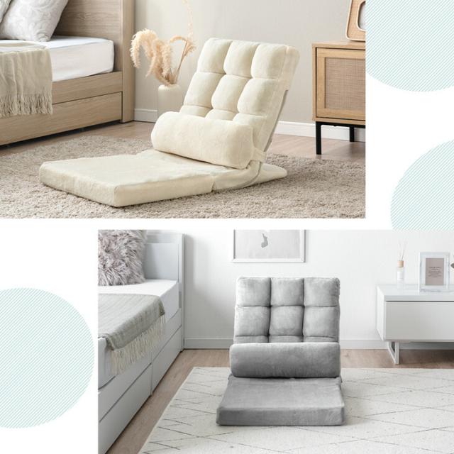ベッドの上に置ける 座椅子 一人掛 背もたれ座椅子 フロアチェア こたつ用 薄い 軽い 持ち運び 背もたれ 腰当て クッション グレー ピンク グレージュ ホワイト もこもこ かわいい 可愛い