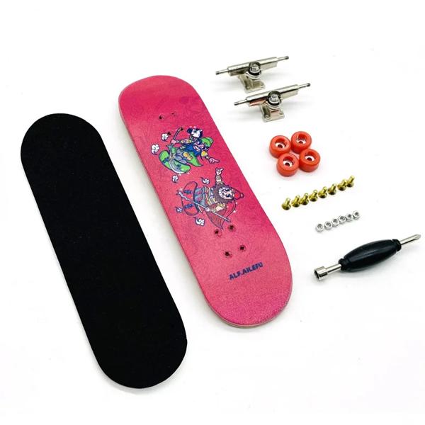 指板セット グラフィック完全な木製フィンガースケートボード合金トラックベアリングホイールミニスケートボード