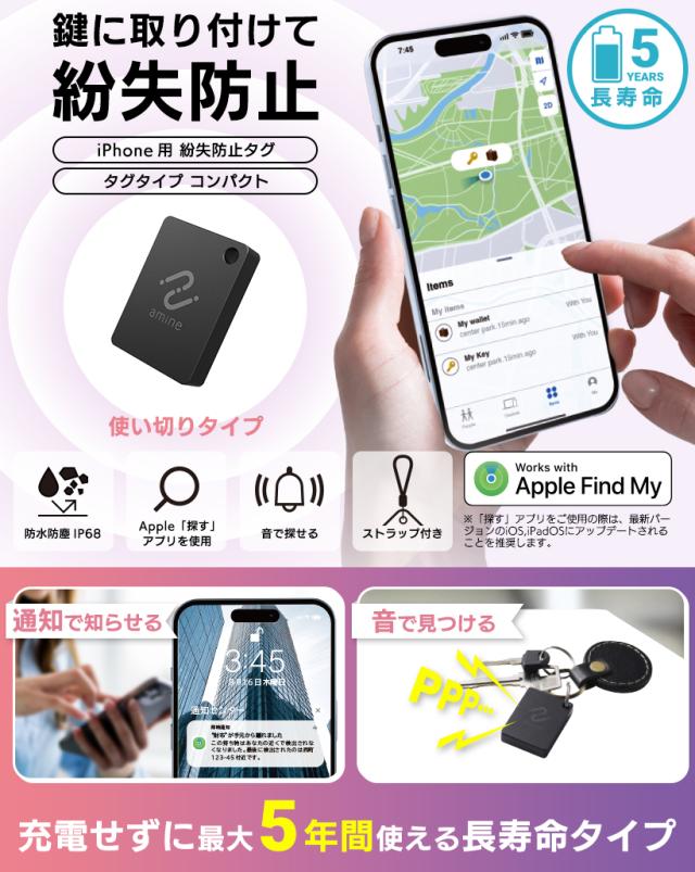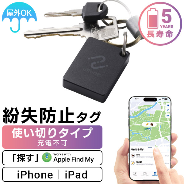 最大5年 使い切り スマートタグ トラッカー 紛失防止タグ 探す amine iPhone iPad 用 忘れ物 探し物 iOS スマホ タグ型 LGT-LWNNTG1BKA new