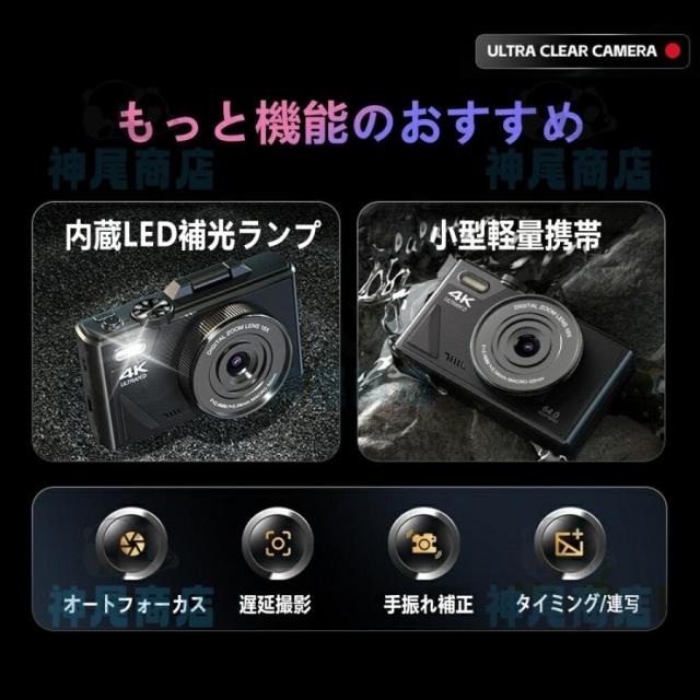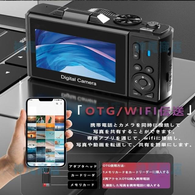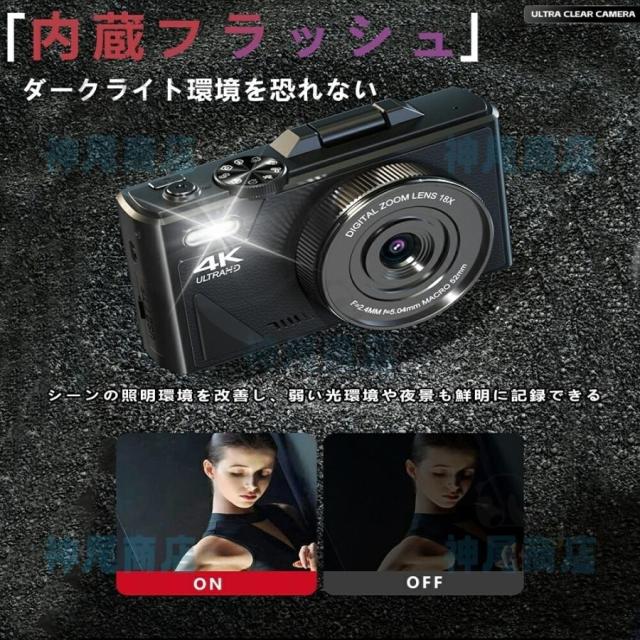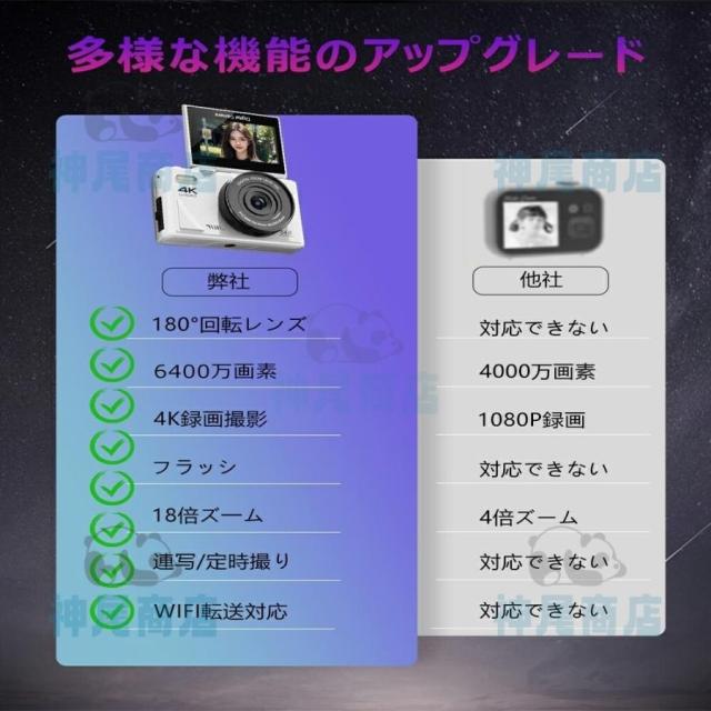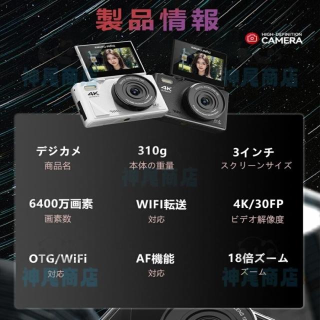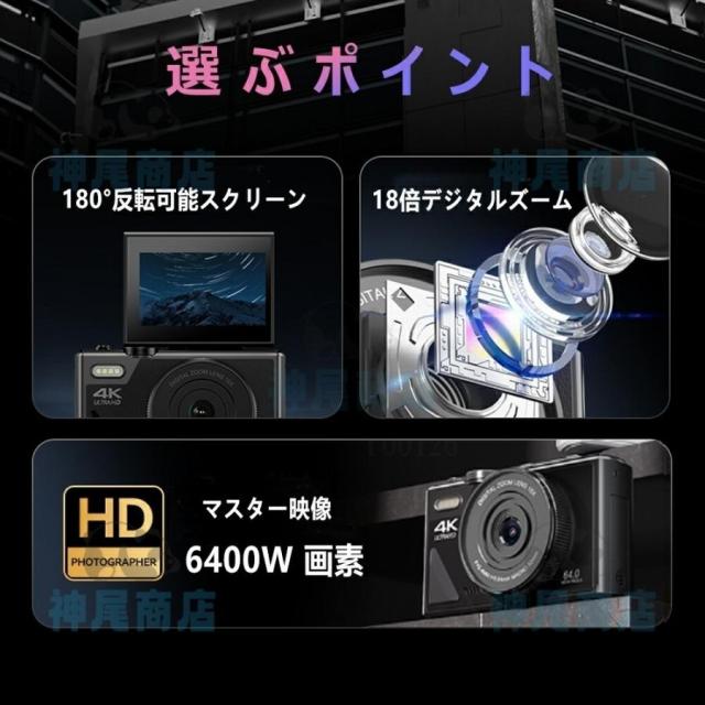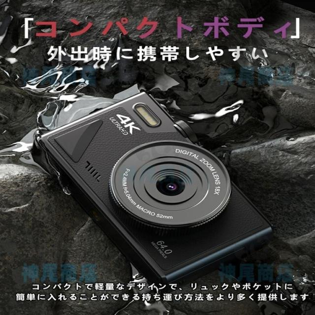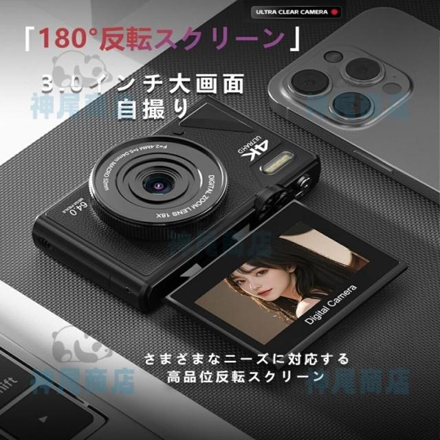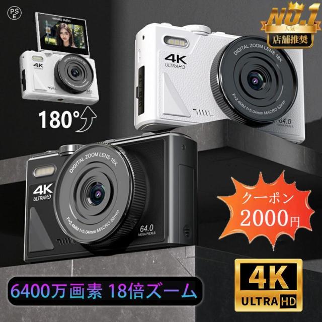 デジタルカメラ 4K wifi対応 6400万画素 小型 18倍ズーム 3.0インチ 大画面 180°回転 軽量 撮影 オートフォーカス AF機能 修学旅行 一眼レフカメラ 安い 小型