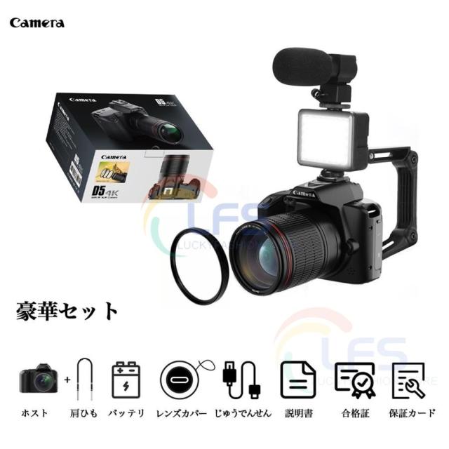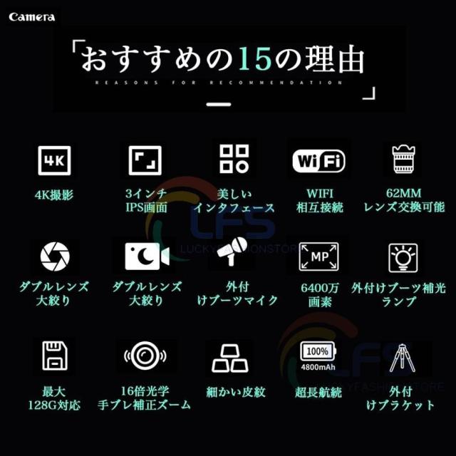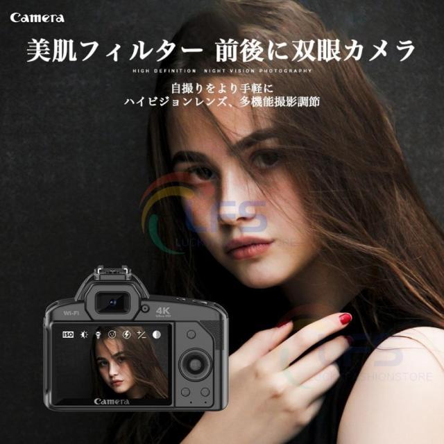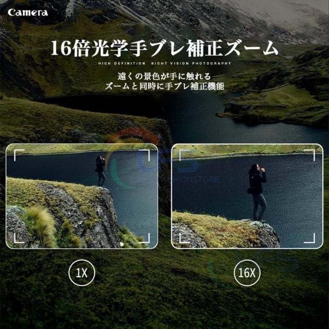 デジタルカメラ 4K 6400万画素 16倍ズーム 小型 IRナイトビジョン電子手ブレ補正 VLOGカメラ スマホ連動 Wifi転送 高画質 超軽量 防塵