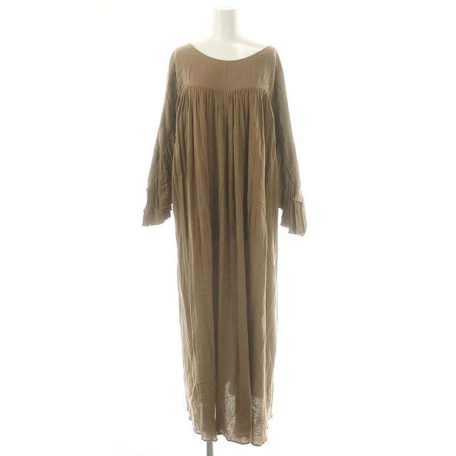 【中古】サラマリカ sara mallika クレープギャザービックスリーブドレス ワンピース 茶 /MI ■OS ■SH レディース