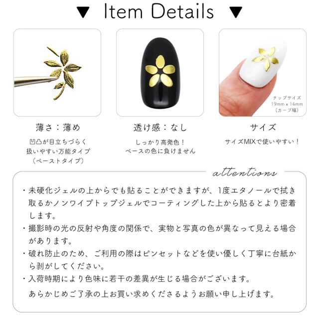 ネイルシール 手描き風ミラーフラワーシール [ゴールド 金/ピンクゴールド] 全2色