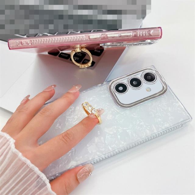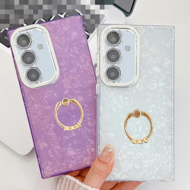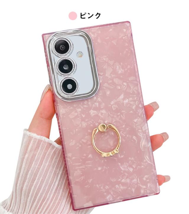 Galaxy A56 5G ケース ストラップホール付き ラインストーン リング付き かわいい ホログラム レディース シェル風 Samsung サムスン ギャラクシー A56 5G おすすめ おしゃれ スマートフォン/スマフォ/スマホケース/カバー