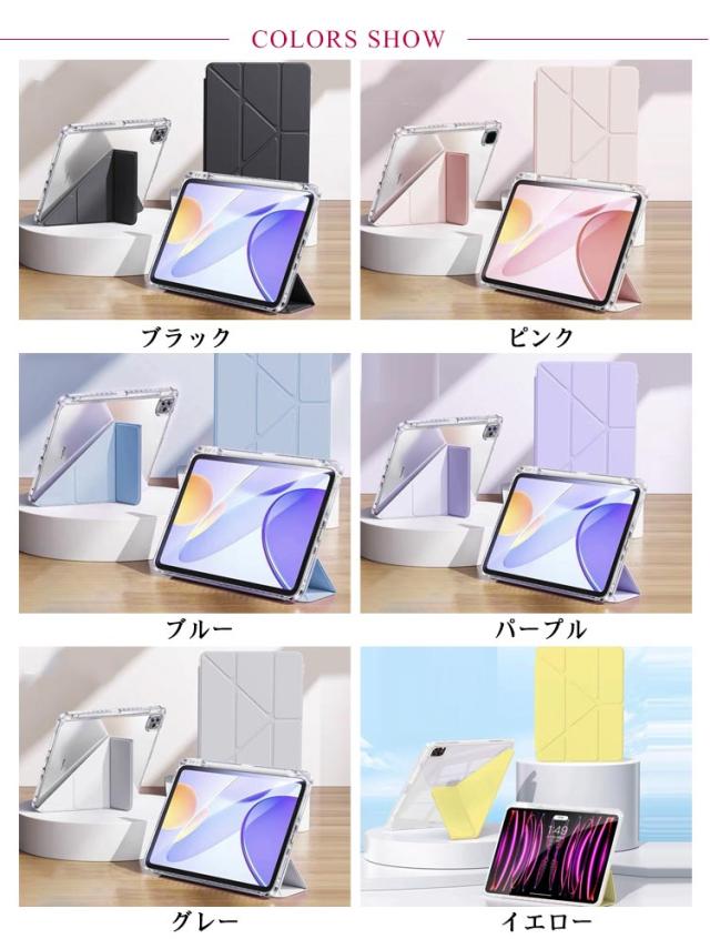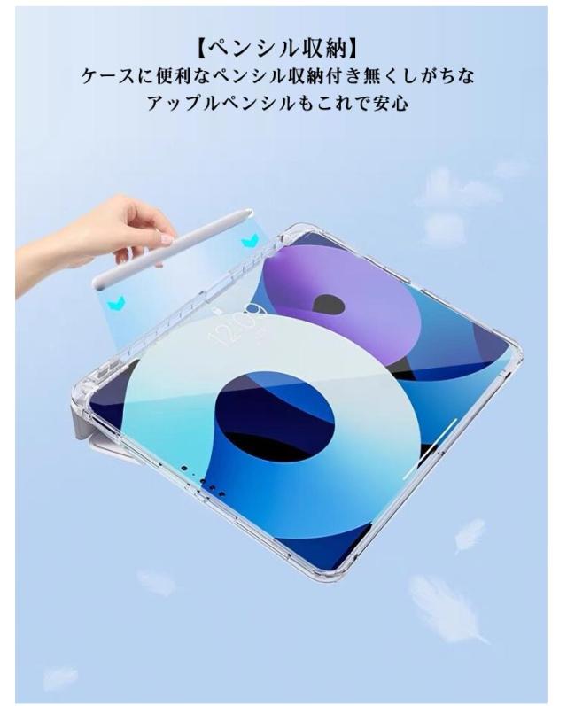 | 縦置き&横置き2way可能なペン収納付きのipadケース。【8.3/9.7/10.2/10.5/10.9/11インチ】 【様々な折り方ができるフロントカバー】フロントカバーを折りたたんで様々な角度でスタンドできる。安定感も抜群で使いやすい。 【透明なバックケース】背面はクリアな素材のバックケース。Appleマークが透けて見えて、とってもオシャレ! 【ペンシル収納】ケースに便利なペンシル収納付き無くしがちなアップルペンシルもこれで安心 【スリムデザイン】軽量かつ耐久性のあるスマートケース。ソフト素材のケースは、iPadを衝撃などから保護します。 【オートスリープ機能】オートスリープ機能で、バッテリーが無駄に消費してしまうのを防ぎます。 | |