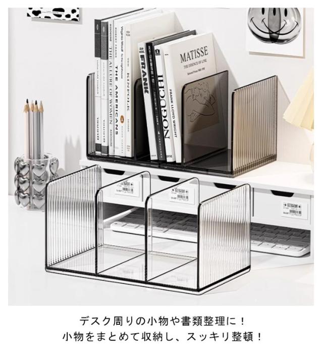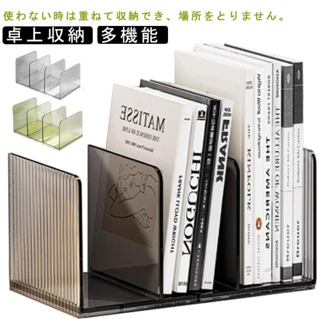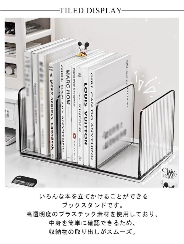 デスク上置き ブックスタンド 本立て クリア 卓上収納 書類整理 仕切りラック 取付不要 プラスチック ファイルボックス 机上ラック オフィス収納 ブックスタンド 雑誌 書類 新聞ファイル 事務用品 文房具