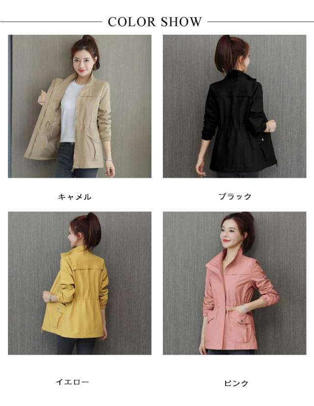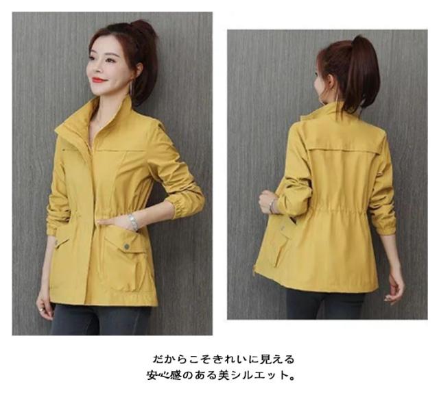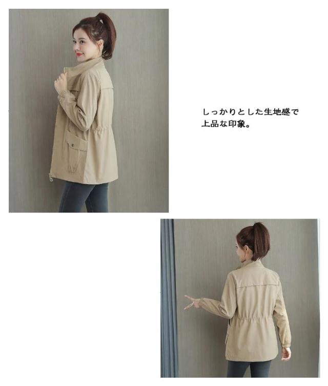 無地 体型カバー トップス 春 裏地付き 立ち襟 コート 長袖 スプリングコート ウエストマーク レディース スプリングコート 紐 カジュアル ポケット ジャケット 着痩せ 大きいサイズ 前開き 通勤 OL オフィス 新作 秋 大人 お洒落
