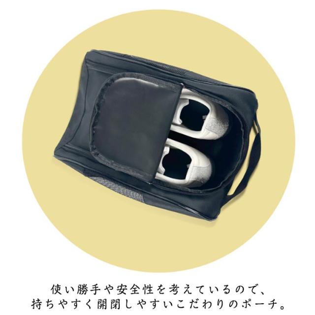 | 【大容量で持ち運びに便利!】 他の荷物にシューズが直接触れないから、汚れてはいけない衣類とも分けての収納が出来るのでおすすめです。 使い勝手や安全性を考えているので、持ちやすく開閉しやすいこだわりのポーチ。 スポーツやアウトドアの際や、荷物が多くかさばりがちな旅行バッグの中身も、これでさっときれいにまとめられます。 | |