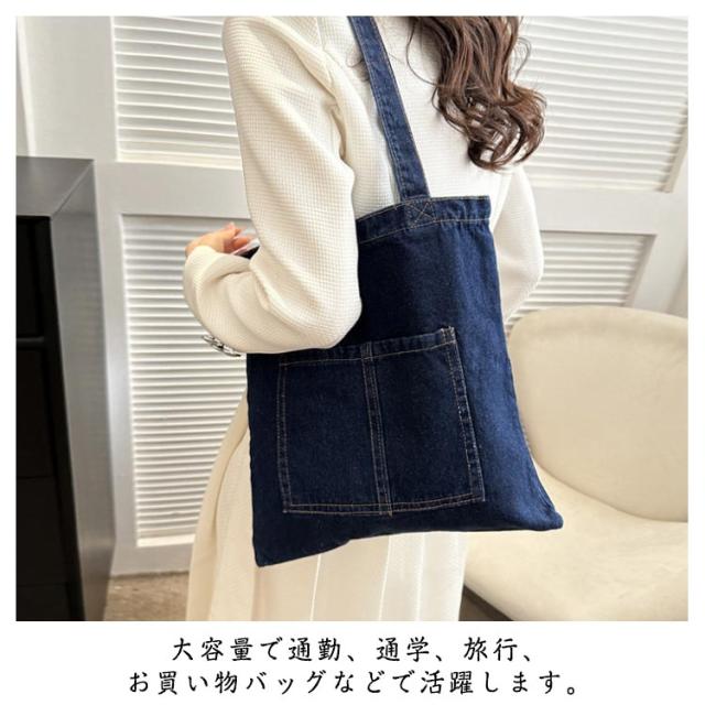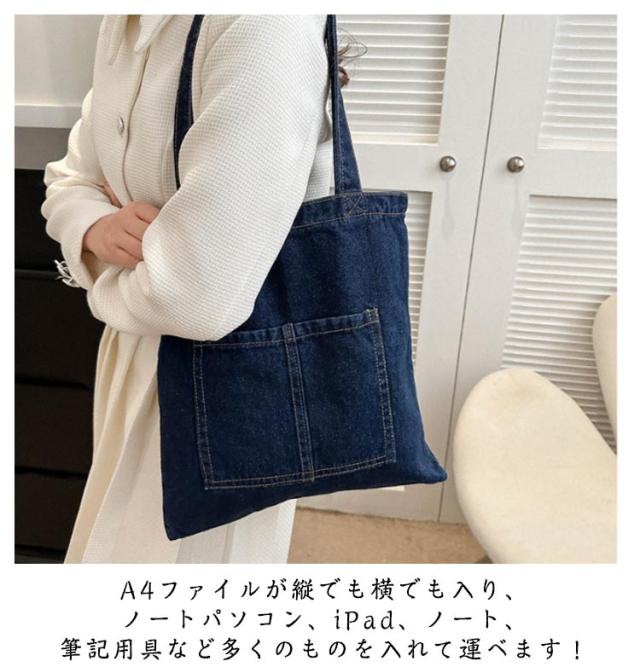 | デニムトートバッグは季節を問わず使用できるのも魅力です。 デニムトートは、シンプルで生地がしっかりして耐久性があります! 大容量で通勤、通学、旅行、お買い物バッグなどで活躍します。 A4ファイルが縦でも横でも入り、ノートパソコン、iPad、ノート、筆記用具など多くのものを入れて運べます! 丸ごとお洗濯できるので、汚れてもすぐに丸洗い可能。 | |