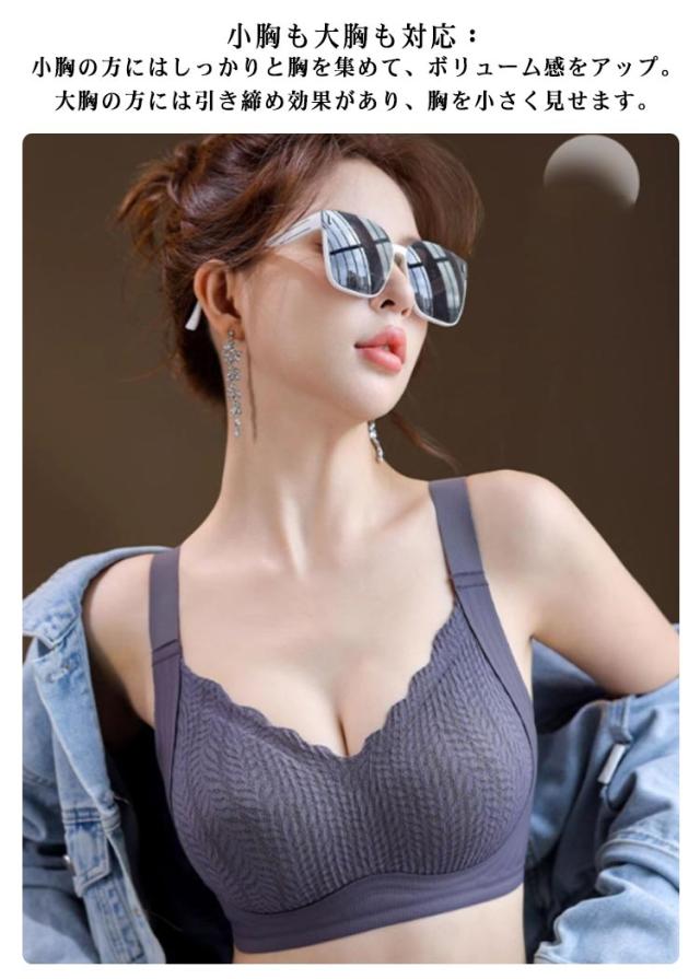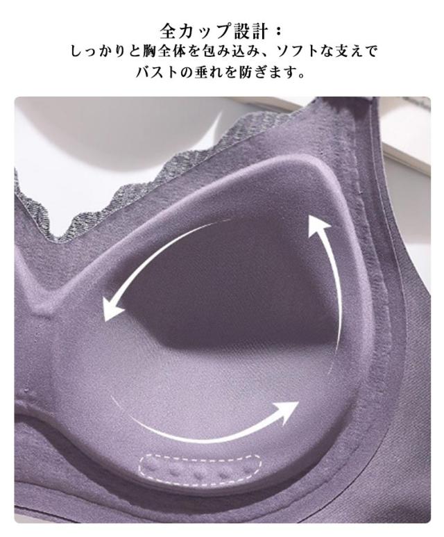レディース ノンワイヤー シームレス レース 胸を小さく見せるブラ ブラジャー 大きいサイズ 盛れる ナイトブラ ブラジャー 脇肉 補正下着 ブラ 美胸 垂れ防止 バストアップ 肩紐調節OK