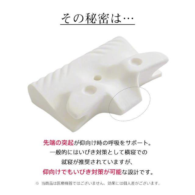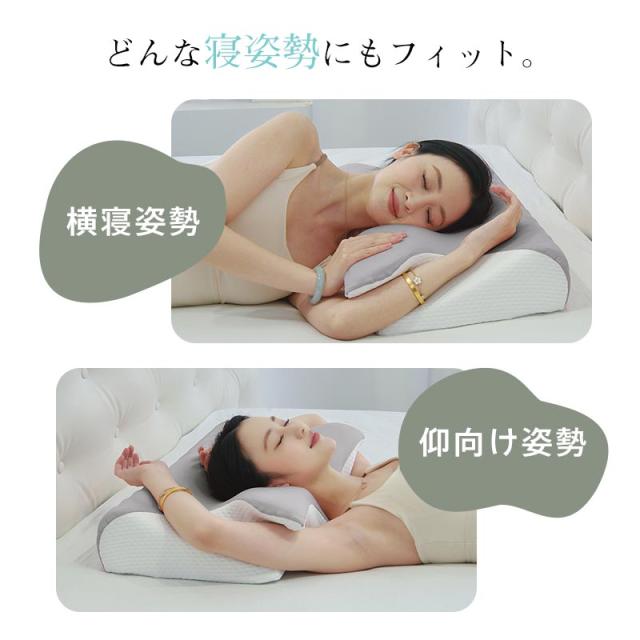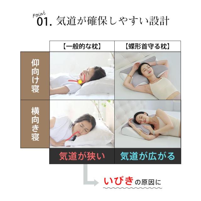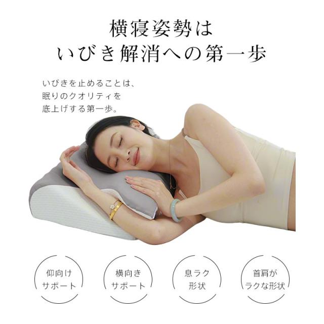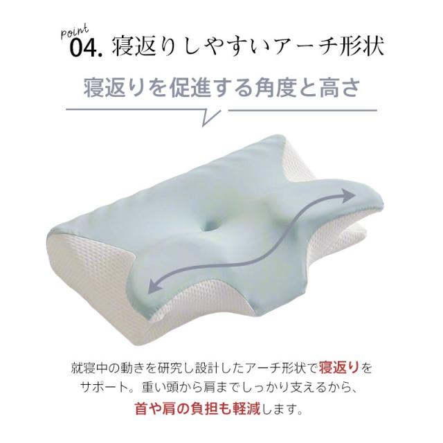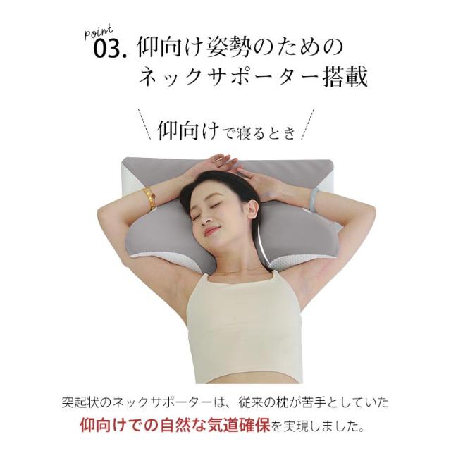 頭部や首、肩の形に沿ったラインで頚椎をしっかり支えて安定させて、頚椎をストレッチするように気道を確保し、呼吸をスムーズにすることによりいびきの改善にも、効果的で睡眠の質を高めます。昨日の疲れが残っていないスッキリとした朝を迎えたい方におすすめの枕です。
