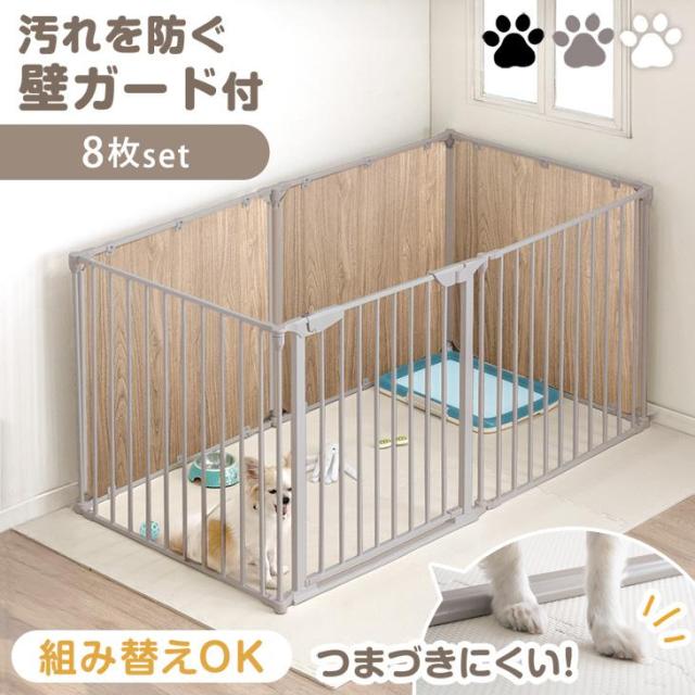 壁汚れを防ぐ パネル付き ペットサークル 8枚セット 木目調 パネル 扉 ドア付き スチール 折りたたみ ハイタイプ 組み替え ケージ ドッグサークル ドッグケージ サークル ペットケージ 犬 犬用 小型犬 中型犬 大型犬 室内