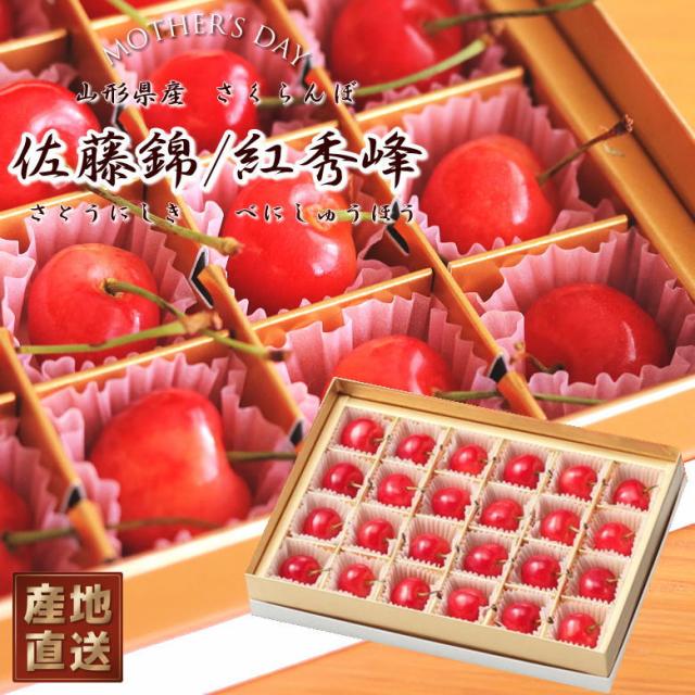 【早割中!】母の日 産直 産地直送 山形県産 さくらんぼ 佐藤錦 or 紅秀峰 さとうにしき べにしゅうほう Lサイズ 24粒 フルーツギフト サクランボ プレゼント 化粧箱 高級 果物 [チョコ箱24粒]【WI】