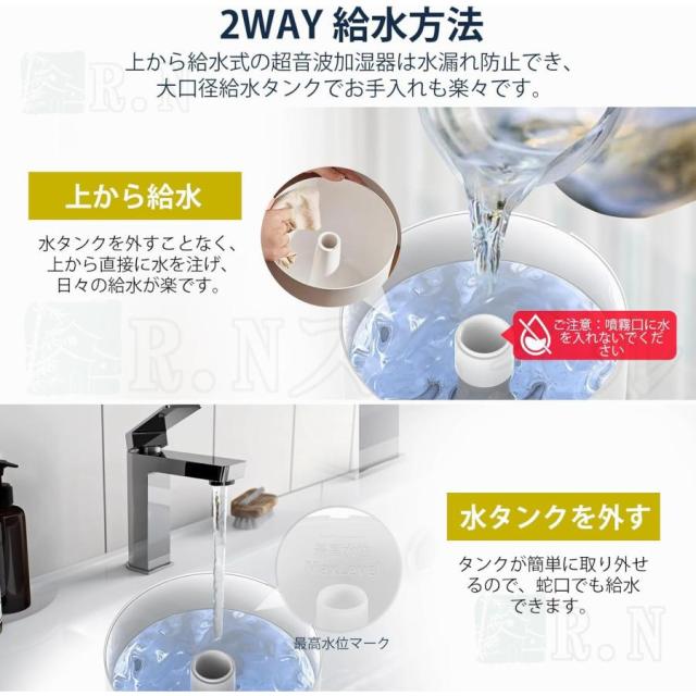 【4L大容量&リモコン機能付き】Nobelbird加湿器は4.0L大容量で頻〓に給水する必要はありません。 最大42時間(弱モード)の運転が可能で、夜明け前も安心して過ごせます。 3つのミストモードで最大加湿量は300ml/hです。広いお部屋にもしっかりと潤いを与えてくれます。 便利な2WAYの上部給水タイプなので、そのまま上から給水、またはタンクを取り出して給水することも可能です。空焚き防止機能も付いており、水が足りないと自動的に作動停止します。リモコン機能もあり、離れた場所や床置き設置でもリモコンだけで簡単に操作できます。