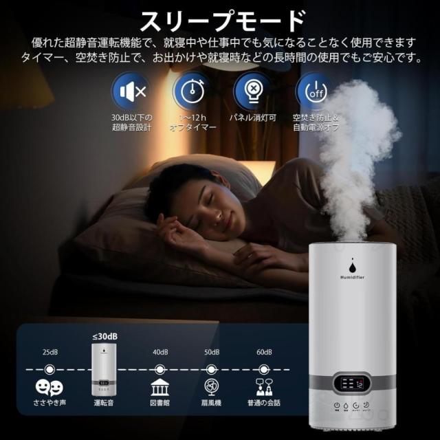 加湿器 超音波式 アロマ対応 大容量 4L 最大24畳対応 省エネ 上部給水 加湿機 空焚き防止 自動湿度調整 タイマー付き お手入れ 簡単 乾燥対策 ウイルス対策 2024