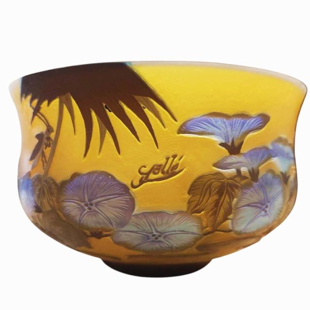 【中古】エミールガレ カメオ彫り 茶器 茶碗 ガラス 置物 花柄 朝顔 工芸品 青 ブルー 茶 マルチカラー その他