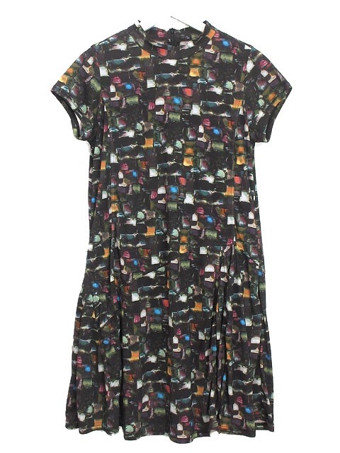 【中古】t.b ティービー センソユニコ チュニック ワンピース プリント 38 黒 ブラック 半袖 レディース