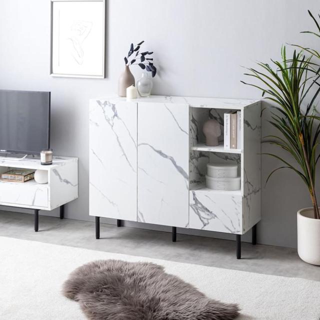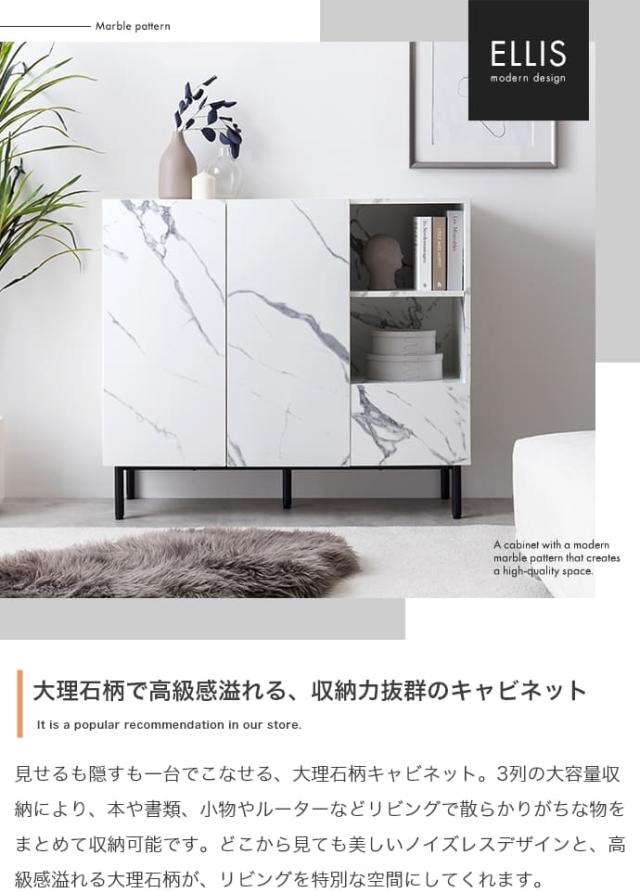 マーブル柄キャビネット キャビネット サイドボード チェスト ラック 大理石柄 ストーン 収納 本棚 スリム 薄型 省スペース