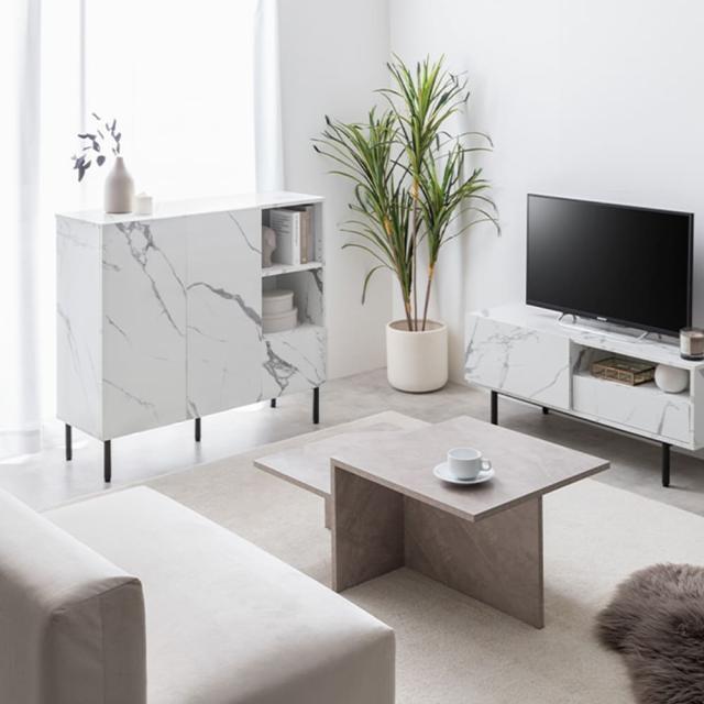 高級感あふれる大理石調デザインが、リビングや寝室を一気におしゃれ空間へ。3列の収納で、本や小物、ルーターなどをすっきり片づけられます。