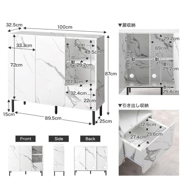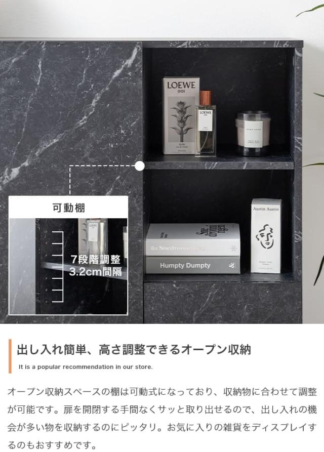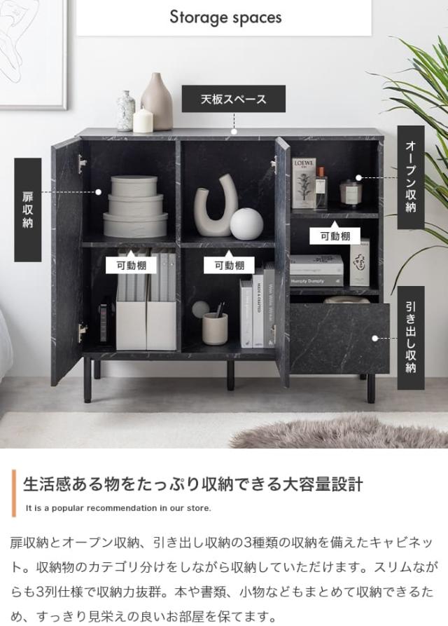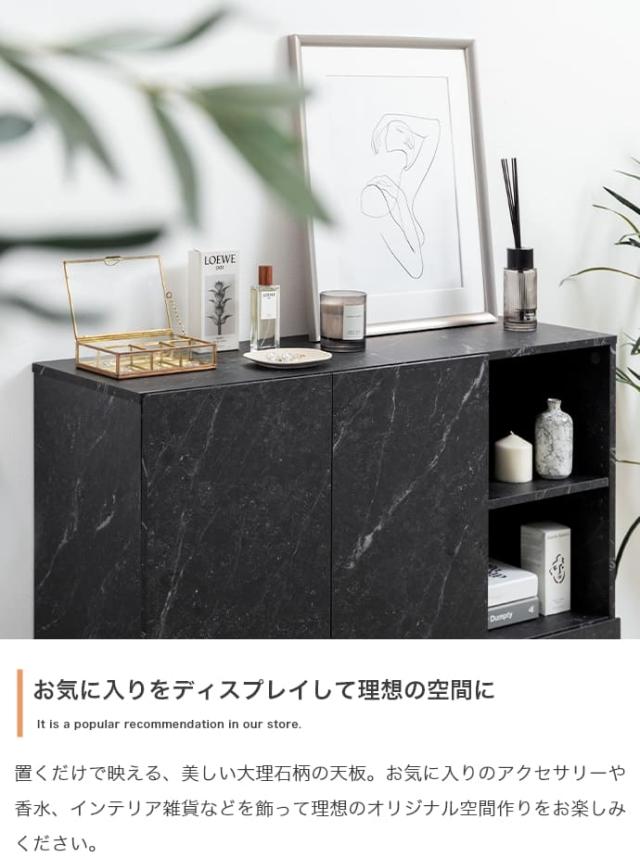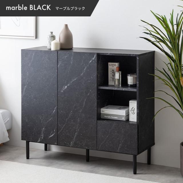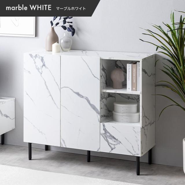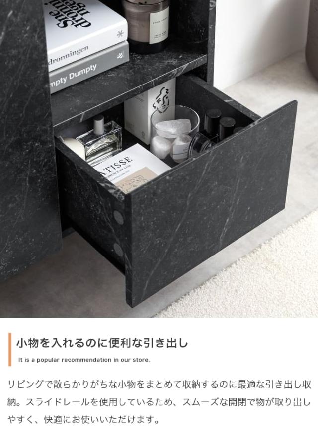 このキャビネットは、まるで本物のような大理石柄のデザインで、置くだけで空間が上品に見えます。