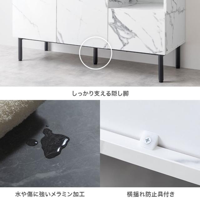 高級感あふれる大理石調デザインが、リビングや寝室を一気におしゃれ空間へ。3列の収納で、本や小物、ルーターなどをすっきり片づけられます。