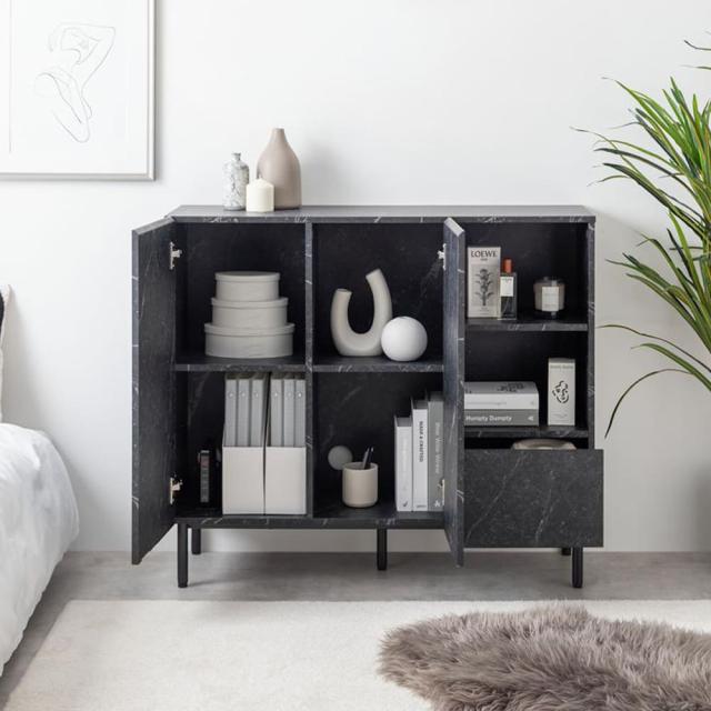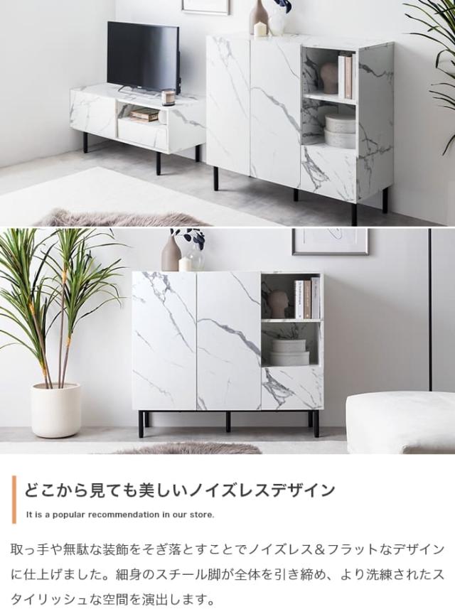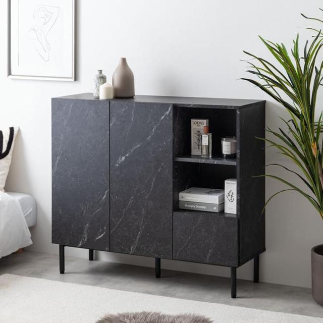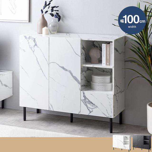 マーブル柄キャビネット キャビネット サイドボード チェスト ラック 大理石柄 ストーン 収納 本棚 スリム 薄型 省スペース