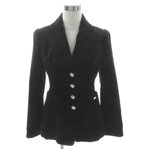 【中古】マダムジョコンダ MADAM JOCONDA ジャケット ベロア テーラードカラー ステッチ ロゴプレート 黒 MJ-38
