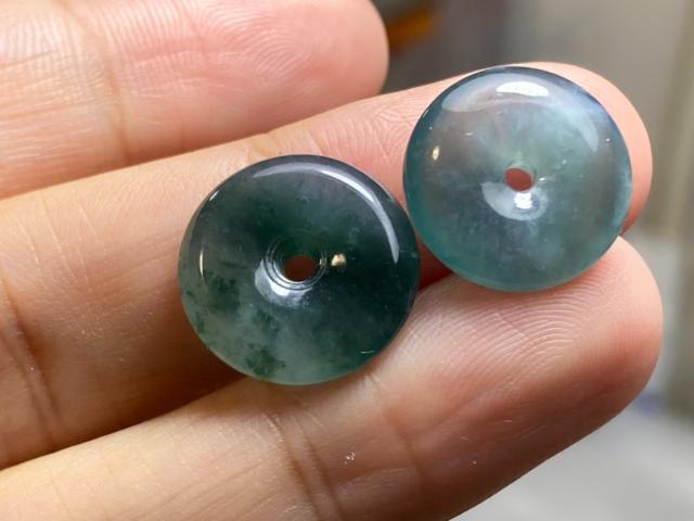 氷種 青灰 藍花 玉壁 平安守り 天然ドグアテマラ産 A貨 本翡翠 ルース、ほぼ完璧の一点物です